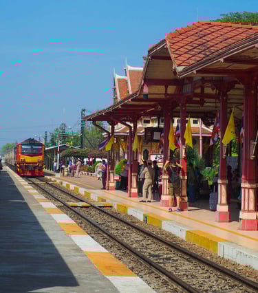 La Thaïlande est un pays développé où les moyens de transport sont nombreux et variés. Parmi eux, le train est sans doute l'une des meilleures façons de voyager à travers le pays du sourire. En effet, ce mode de transport est le plus économique en Thaïlande et également l'un des plus écologique. Les quatre lignes du réseau desservent tout le pays et les trains contiennent trois classes la 1 ère étant évidemment la plus chère et la plus confortable. En revanche, le principal inconvénient du train en Thaïlande c'est que sa ponctualité n'est pas toujours fiable, ainsi il y a régulièrement des retards sur le réseau. De ce fait, il arrive qu'un train d'une autre destination prenne la place du train retardé. Donc vérifie bien que le train qui arrive à l'heure de ton départ se rend bien vers ta destination. Il serait dommage de te retrouver dans une région autre que celle où tu voulais te rendre !